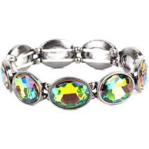 Glassy OIL SPILL gems are pressed into sleek silver frames. Infused with dainty silver beads, the glittery frames are threaded along stretchy elastic bands for a glamorous look around the wrist.